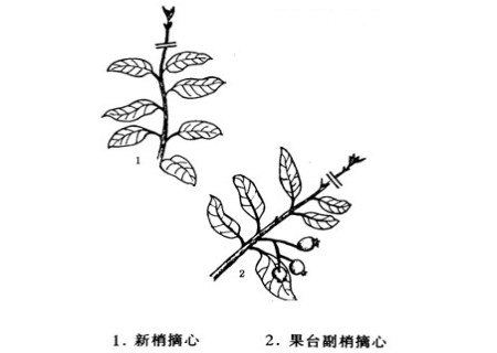摘除当年生枝条的生长点,称为摘心,以5~7月份为宜。通过摘心,可以抑制新梢生长,促进侧芽萌发,增加分枝,增强养分积累,促进花芽分化,有利于枝条越冬。
