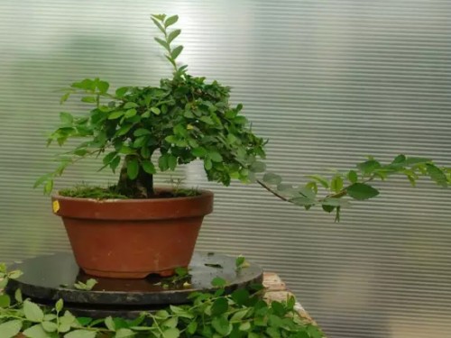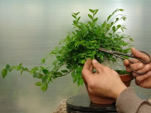 首先修剪盆景正面,根据需要,首先将徒长枝剪掉。