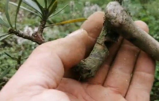 其实方法很简单,首先我们需要在枝条上选择好需要拿弯处理的部位,然后将枝干上向下弯曲的部位切出一个楔状的口子,注意控制好楔口的大小,深度最多保持在枝干粗度的2/3即可。这样就很便于我们进行拿弯处理制作下跌枝了。