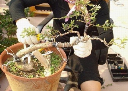 罗汉松盆景常用的手法有剪、扎、压、捆、吊等。修剪造型较简单,扎、压、捆、吊等造型手法较难,对造型者的艺术想象力、操作技巧和树体的茎干、枝条状况要求较高,在造型过程中必须根据苗木的本身自然美来进行艺术加工,也就是必须因树制宜,美上加美,做到造型刚强有力,层次分明。
