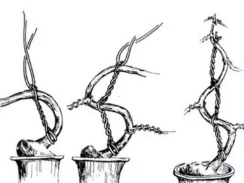 攀扎:用金属线对枝条进行缠绕,然后进行弯曲。