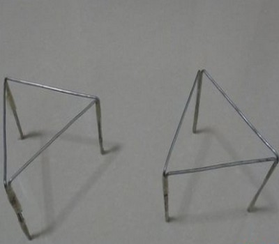 将三个立柱穿过螺旋体中心,按照自上而下的顺序开始捆扎,初次制作可能出现三根立柱之间距离不等分,或者立柱歪斜,不能与地面垂直等现象,这时候就要用三角支撑,使用方法如下图: