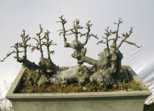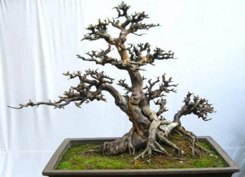 榆树的造型应以剪为主,剪扎并用。根据其老桩的基本形态,主干可制作成直干式、曲干式、斜干式、卧干式、临水式、风吹式、丛林式或悬崖式等多种形式。榆树根系发达,非常适合制作提根式或附石式盆景。