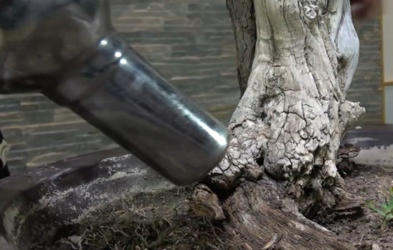 此时我们需要准备一把钢刷,将枣树舍利干及根部腐朽引起的尘土、杂质等清理干净。但钢刷比较硬,而舍利干又出现了腐朽现象,因此操作过程中要十分精神,避免将舍利干刷得残缺不全。