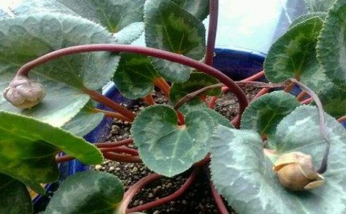 不过,修剪花谢后的茎秆要非常谨慎,一般使用剪子剪除,而不宜为了图方便而直接用手拉扯。因为直接用手拉扯的,很容易将仙客来的种球弄伤,而种球受伤后在湿润的盆土中容易感染病菌,从而发生烂球的现象,甚至可能致死,这对于盆栽仙客来而言,无疑带来了一种毁灭性的灾难。
