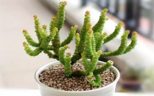多肉植物钱串子因其茎枝长得颇像古代的钱串一般而得名,看起来非常形象生动。正因为钱串子具有奇特的株型效果,而且看上去玲珑精致,色彩也非常明快动人,因而具有比较高的观赏价值,所以不少盆友喜欢将其作为家庭盆栽种养。