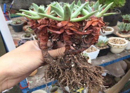 小编上述为大家介绍的主要是针对并非真正多肉老桩促其发根的方法,下面小编就为大家介绍一下真正意义上的多肉老桩发根的方法。而这类真老桩一般基部只有几根粗壮的根,并没有大量的须根。所以我们需要通过采取一定的措施来促使其发根。