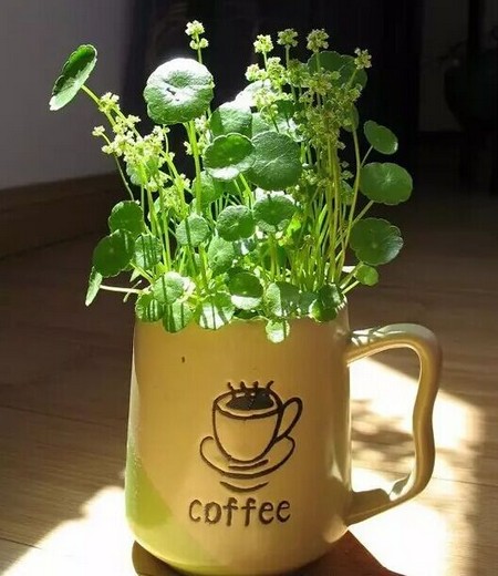(4)铜钱草不需很大的盆,也可用比较大的碗来栽,水仙盆也可以。栽时可平栽,要把根茎盖住使看不见为好,切忌过深。然后放在半阴处一个星期等新叶长成再见见阳光。