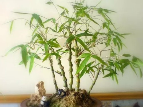 要合理选盆。竹为浅根植物,宜用面积大的广口浅盆,也可用塑料花盆、塑料桶、瓦盆及陶盆、营养钵等。要根据竹子大小选择合适的盆,如地被竹中的菲白竹,可用10厘米×10厘米、或13厘米×12厘米的营养钵;小型竹如罗汉竹,可用30厘米×30厘米的营养钵。把竹子疏植于盆的一侧,有碍布局的枝叶可以剪去,再配以小型的假山奇石,土面可植少量的苔藓藻作陪衬。