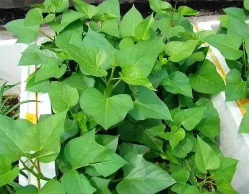 注:如果您会一点造型设计,便可以来个地瓜盆景,剪下的叶子可以炒菜吃。