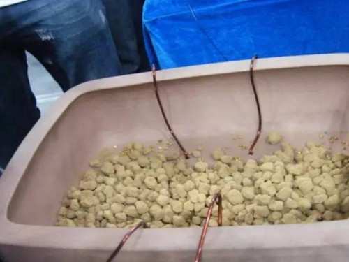 2、绕好固定铝线,铺上大颗赤玉土及肥料
