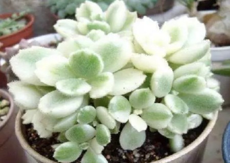一种是叶片带上一些白色斑块,我们可以称其为白锦熊童子;另一种是叶片带一些黄色斑块,我们可以称其为黄锦熊童子。那么,我们熊童子白锦黄锦怎么区别开来呢?其实,这是非常好辨别的,下面小编来为大家讲一讲这两种出锦变异的熊童子的识别方法。