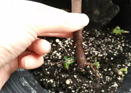 之前我们扦插的无花果幼株已经长势良好了,为了做好移栽,我们首先要选择露头吐绿、生长健壮、株形美观且长有2个芽点以上的幼苗进行栽种。