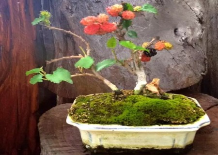 桑椹是很生命力超强的树种,当果实已确定着果,进行剃叶,很快的二次芽即可长出,因是二次芽所以长成的叶子会变小,二次芽的叶子大小刚好适合迷你品,而二次芽叶子长成的此时果实也正好变红喽!桑椹的生命力超强才能经得起这般的手术还能不掉果,所以这个方法并不适用其他的花果盆栽。