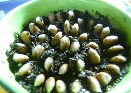 步骤4:先在盆里铺好土。柚子核算大颗种子,一个一个打圈圈排列好,要特别注意,发芽点的部位要朝上,然后由外圈往内慢慢排列整齐。