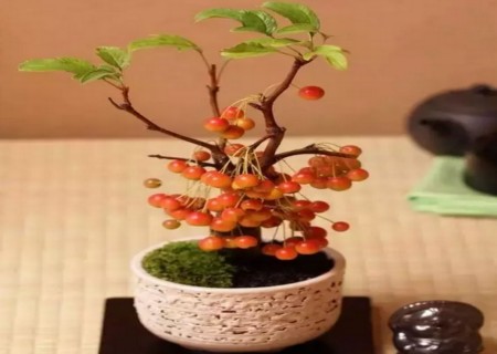 盆栽樱桃是微型化的樱桃园,它即可观赏到花满枝头、硕果累累的美丽景色,又可在观赏之余有佳果可晶。近几年来,伴随盆栽技艺的提高,正逐渐步入千家万户的阳台、庭院。家里有这样一盆樱桃,好怕控制不住自己,一口气全部吃光光了。