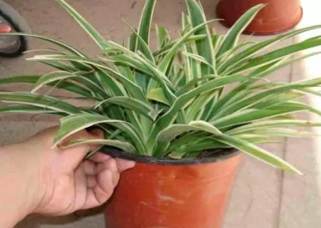2、轻轻拍打金边吊兰的花盆周围,使花盆和里边的土壤分离开来,再将吊兰和泥土轻轻从花盆中倒出!