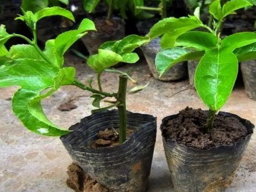 种植百香果主要采用播种和扦插两种方法。而为了盆栽百香果早结果、容易结果,盆栽用苗好采用枝条繁殖的扦插苗。具体方法如下:用丰产、健康的植株上剪取枝条扦插;每条插枝一般以两节长或三节长为宜,下切口离节1厘米为宜,而上切口应在顶芽上方2厘米为宜。剪插条时上部留半片叶至一片叶。插后要保持苗床的湿度,取好用塑料薄膜小拱棚或大棚育苗,同时每天要淋水以保持湿度;在晴天温度较高时,需适时打开散热。