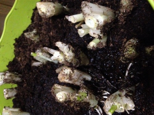 step2:将剪下来的水芹根,种植在无孔盆器里,用泥炭图覆盖住根部,这样涨势跟快,到来年春天会大爆发的(也可以直接用绳子捆住,放在无孔容器里直接水培);