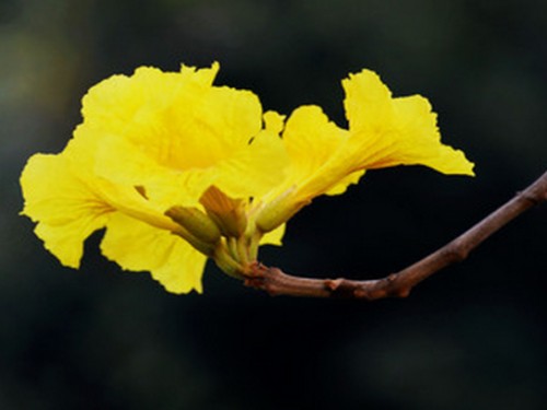 黄风铃木约3-4月间开花,花冠漏斗形,也像风铃状,花缘皱曲,花色鲜黄;花季时花多叶少,颇为美丽;夏天长叶结果荚,果实为??果,向下开裂,开裂时果荚多重反卷,向下开裂,种子带薄翅,有许多绒毛以利种子散播。有许多绒毛以利种子散播。秋天枝叶繁盛,一片绿油油的景象;冬天枯枝落叶,呈现出凄凉之美。