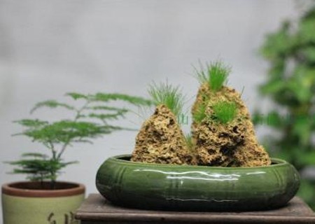 用上水石不但可以制作山水景观,而且还能在石头上种上草籽呢,这其实就是利用上水石很强的吸水性为种子供水进行播种的过程。当然,采用这种方式在上水石上种草来丰富盆景,为上水石盆景带来生机活力的方法是可以实现的。