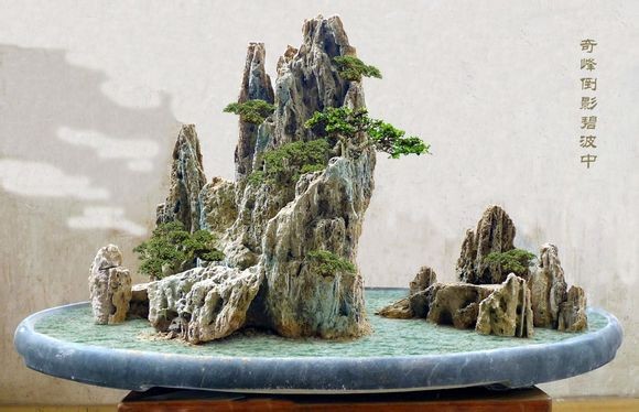 盆景同盆栽不同,一个“景”字就在整个园艺创作方面上了一个台阶。天地之妙,山水之影,咫尺千里,尽在这一盆一土的奇妙表达之中。山水盆景都是在室内陈设的,也可摆放在庭园的过廊和屋檐下,不能让阳光照射,也不能淋雨,特别要注意防风,以防石倒盆碎。