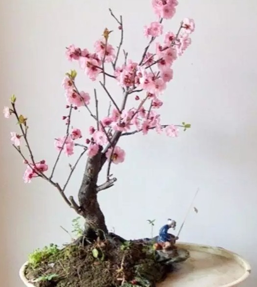 接下去是在陆地部分栽树,栽植孤树一株。 我选用的是一棵盆养多年生的带花蕾美人梅。