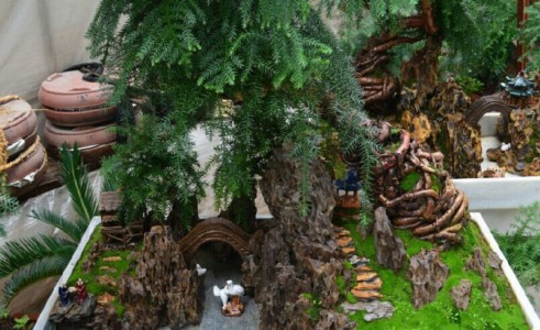 ①必须合乎自然:如果说在树木盆景中,可以有一些规则式或装饰性较强的造型,那么在水旱盆景中,树木材料必须完全以自然树木景象为依据,再做必要的取舍。在整枝技法上,一般适宜以修剪为主、蟠扎为辅。任何明显的人工痕迹,或是过度的变形,都会造成与其它部分的不协调,而影响到整体效果。