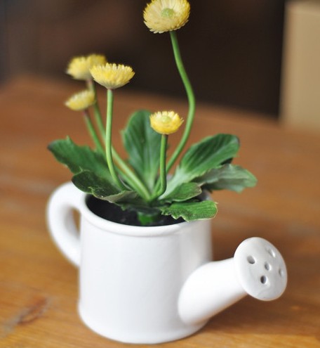 一只小茶杯、一只陶瓷碗、一只小茶壶,若是里面种上绿色的植物,必定是房间里一道亮丽的风景线。