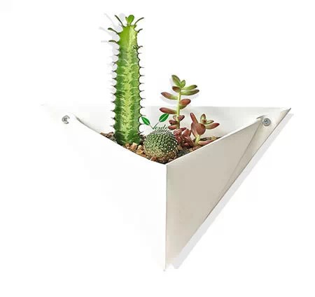 这款壁挂盆栽从折纸得到灵感,由可降解塑料制作而成,简单折叠即可由一块平板变成3D的花盆,挂在墙上,简洁独特,带来些许生机。设计师遵从设计规律,选择几何图形中稳定性最好的三角形作为基地,这样就能大大增加产品的牢靠性。
