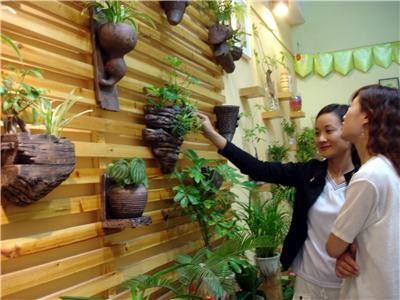 植物的种植绘制远景,题字与印章依构思和种植孔的大小,选用不同姿态、不同大小、不同种类的植物,并小心地把它种在种植孔内。然后绘制和配置衬景、远景,如山、水、林、鸟、人物、船只等,并在适当部位题词与印章。这样,波幅或山林野趣、或层峦叠嶂、或百丈飞瀑、或江海帆影等大自然的景观就出现在您的眼前。
