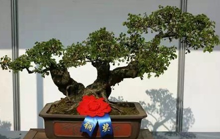 岭南盆景的近树造型,不但要求整体优美协调,而且对每一个组成环节如根、干、枝、梢、叶都有一套严谨章法。根要舒张,盘曲有力。不同树型对根也有不同要求,如大树型配盘根,飘斜型配偏根,木棉型配板根,悬崖、水影型配爪根等;干布纹节,躯体嶙峋,结顶自然;枝托粗劲,四岐区分,争让得法,轻重有序;梢分前后,偃仰得宜,密而不实,疏而不散;叶贵细小,疏密相宜,前不掩后,交相辉映。树的整体脉络相通,顾盼传情。还讲究树、盆、几架的协调配合。