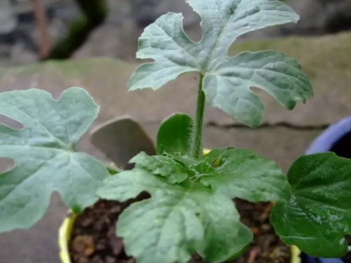 5、如果花友有条件,可以把西瓜苗分到不同的花盆里,这样也许可以吃到西瓜,不过一定要有大一点的花盆,还有阳光充足的环境,下面我们看看西瓜爬藤会什么样子。