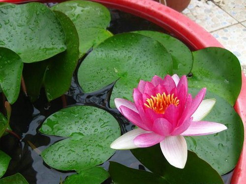 播种盆大者可不必移栽。小者(口径14cm以下)应待长出2-3片立叶后,选用较原盆大的花盆进行移栽,移栽能促使当年开花。1982年6月28日武汉东湖荷圊移栽“锦边莲”、“娃娃莲”、“粉碗莲”、“玉碗”、“杏花春雨”等品种的播种苗15盆,当年9月中旬开花12盆,占80%。未移者65盆,只29盆开花,占40%。移栽方法简单,先将新盆盛少量沃泥,随即脱盆带泥迅速移入新盆中央,注意勿折伤新叶,盆内空隙填充稀泥,移后直接灌水,成活率达100%。
