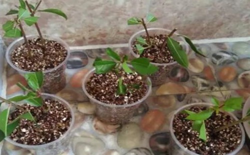 完成消毒后,将插穗下端涂抹上生根粉,或放在生根液中浸泡几秒钟。如果没有生根粉,也可以使用吲哚乙酸或萘乙酸溶液,约浸泡2-3秒钟即可。主要是为了加速插枝后的萌发,让其快速生根发芽,早日培育出可以移栽的石榴树小苗。同时,插枝上尽可能少留叶子,也减少枝条中的水分流失,避免影响枝条的成活。