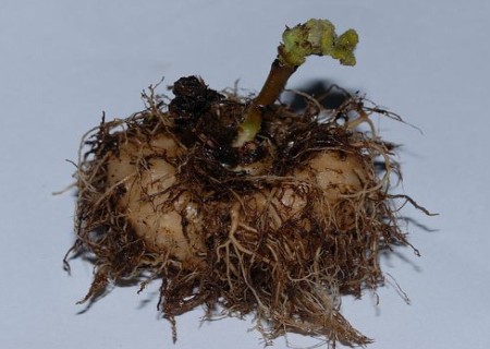 4、砍头后的球茎通常会多芽齐发,若非为了繁殖,可在众芽中只留一个,把弱小的芽摘掉,这样有利于营养集中,花开得多而饱满。