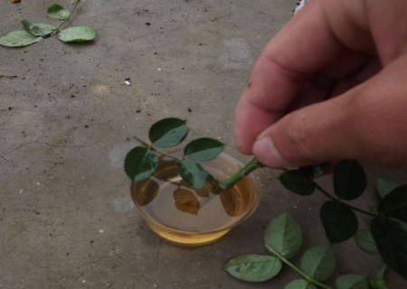 10、扦插之前,现将插条基部放在浓度较高的生根水中浸泡。说是浸泡,但时间不宜过长,或者说是将插枝基部沾一下生根水会更准确些。