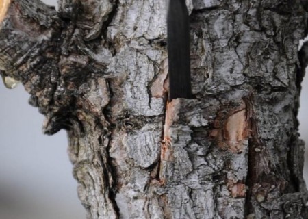 4、在山松老桩枝干上早开一个小口,大小与接穗插口适中。