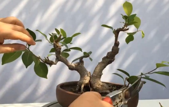 而且这个季节给榕树盆景不仅要剪枝,更多的是仍然是给它摘叶。摘掉宽大的老叶片之后,它重新萌发出来的新叶通常就会更细小,而细小的叶片由于观赏性更高,所以获取更小的叶片就是我们摘叶的主要目的。而摘叶一般需要将枝条上的所有的宽大老叶片都知道,最多保留枝条尾部的几片小叶子以便于进行光合作用即可。