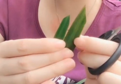 3、同样按照一定的角度,从焦尖部分下方叶片边缘修剪,而且叶片的两个边缘都要按照此法进行修剪,让两个伤口呈对称状。但这样修剪的造成的伤口创面就更大了,但修剪后的叶片更美观。