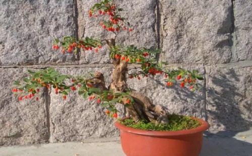 而在初秋时节,我们可以对枸杞盆景进行第二次摘叶处理。此时摘叶,主要是为了促进花蕾与叶芽同时抽出来,而到了深秋之际,我们不仅能观叶,同时还能观果了。而且此时绿色的新叶与艳红的果实相互映衬,观赏效果极佳。不过,虽然枸杞树的萌发能力强,一年当中我们也不能对其进行太多次数的摘叶处理,最适合摘2次叶:一次在春末夏初,一次在秋初。