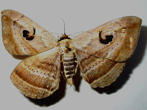 二、变色夜蛾的分布与危害:变色夜蛾EnmonodiavespertiliFabricius属鳞翅目,夜蛾科。分布于上海、青岛、南京、杭州、无锡、连云港、南昌、福州、厦门、昆明和广东等地。幼虫为害合欢、紫藤、紫薇、兰花、楹树、桃和梨等。幼虫取食叶片,严重时,残留主脉和叶柄,成虫吸食柑橘等果汁,引起落果。
