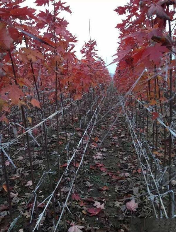 美国红枫苗木出圃时应达到地上部枝条健壮、成熟度好、芽饱满、根系健全、须根多、无病虫等标准。