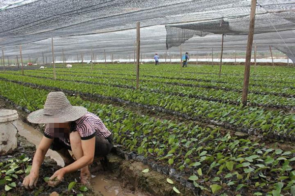 1、扦插设施和苗床准备:采用单体大棚扦插,要盖上大棚薄膜,外加遮阴网。棚内地面整平后建立地面扦插苗床。苗床宽度为100厘米左右,四周安装10至12厘米高的挡板。苗床底部铺一层细沙以利排水,扦插基质可用蛭石加泥炭,或用洁净的黄心土加细沙。苗床及基质要用杀菌剂和杀虫剂消毒,以防病虫害。
