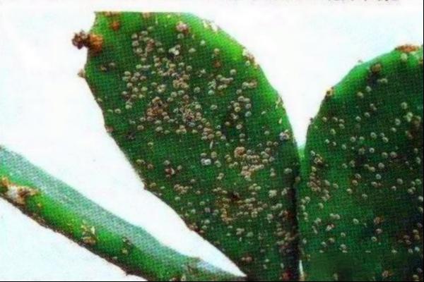 仙人掌白盾蚧分布广泛,可危害各类仙人掌植物。密度高时,重叠成堆,紧贴在寄主表面吮吸汁液,是仙人掌科植物的一大害虫。发生规律为一年2至3代。