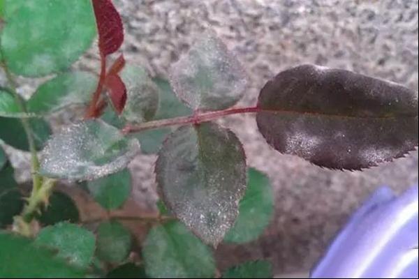 二、白粉病:白粉病的症状是叶片上面会出现白色粉末状的小斑点,严重的会整个叶片上都感染这种真菌,严重影响月季的光和作用。