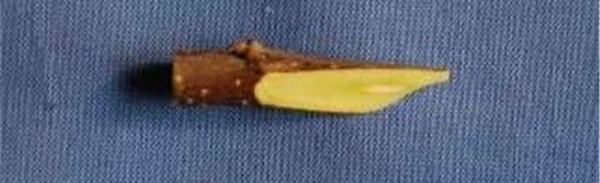 接穗切削完成后,要求露出髓心(这是与“劈接”接穗的消法最大的区别之处)。