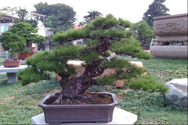 2、树形:黑松盆景可制作成直干式、斜干式、曲干式和悬崖式,也适宜制作附石盆景和挂壁盆景。黑松具有典型松树形态特征,其造型要求可参照五针松的造型,但黑松针叶粗硬而较长,不一定剪扎成片状,可通过摘芽方法来控制其枝叶生长。