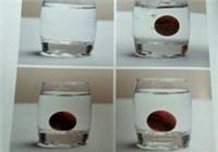 7、荧光(上图):木质好,油性好的小叶紫檀,在打磨加工后,表面形成的一种通透感的荧光。且不会因为盘玩而消失。这种木料,放入清水12小时后,比如晚上放入早上去看,如图,水中有一种泛着蓝色的荧光。(荧光,在珠子表面就有,水浸后水里也有。这是一种破坏性的鉴别方式,浸泡完的珠子,损伤很大。)