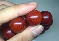 5、油性(上图):油性好的小叶紫檀,就容易盘出好包浆。谈油性,其实是谈包浆。就是珠子经过盘玩形成的氧化层。油性会顺着木质的导管,从棕眼渗出来。油性好的新珠子,放上一晚,或几天,再拿出来,一上手,就会有阻滞感。油性,是通过手感体现的。也能通过色泽体现出来。(油性、密度、克重、尺寸必须合一)。